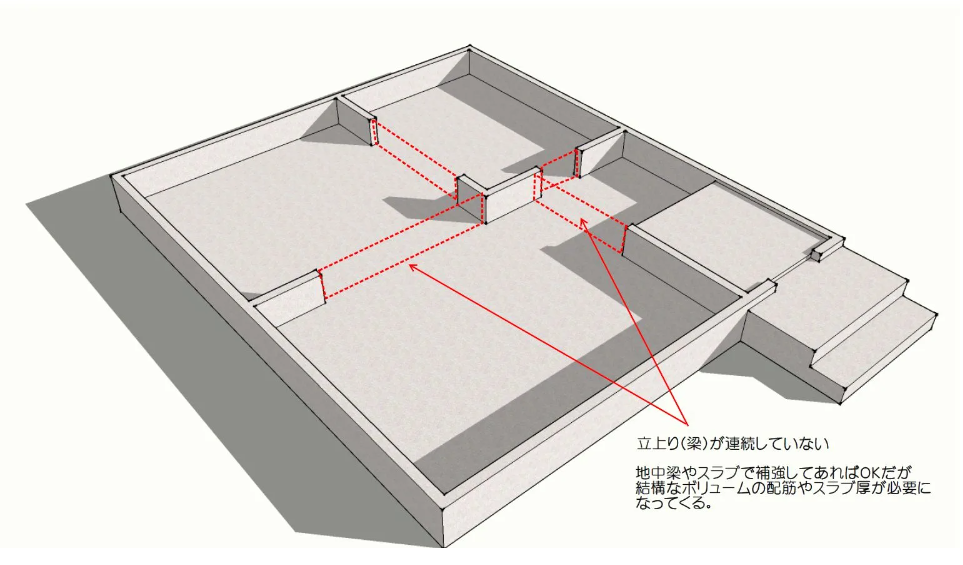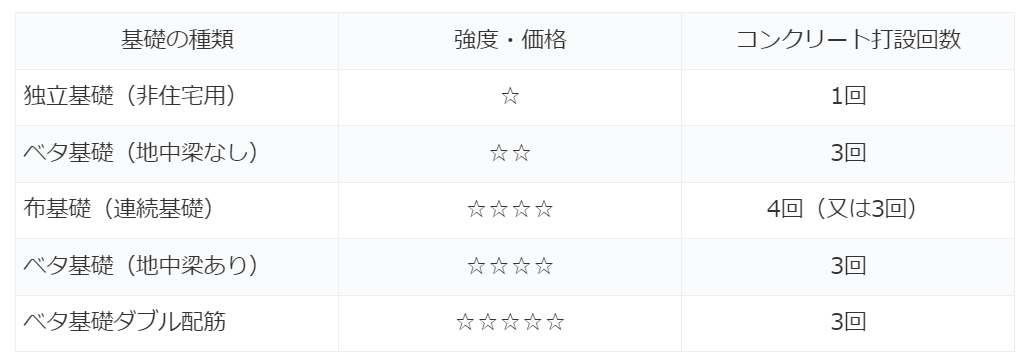 下記情報は他サイトからの引用となりますが、建売やローコストメーカーの言うベタ基礎は名前ばかりのケースもあるようなので、一条工務店の布基礎はきとんと連続基礎を採用し、呼び強度30N以上のコンクリートを使っているため、それほど心配する必要はないと最終的には納得することにしました。