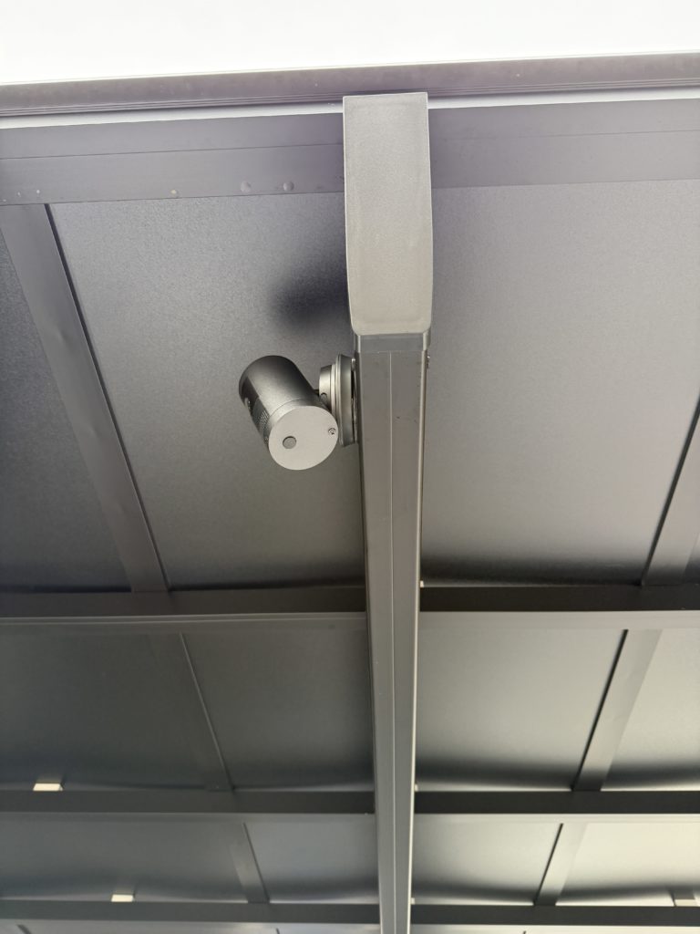 早速ですが、カーポートに設置した防犯カメラはこちらです。こだわりとして穴を開けていません。