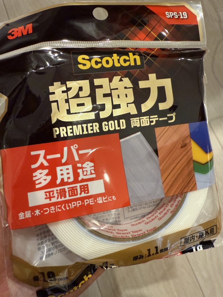 これを強力両面テープで固定します。3Mの両面テープはかなり優秀です。