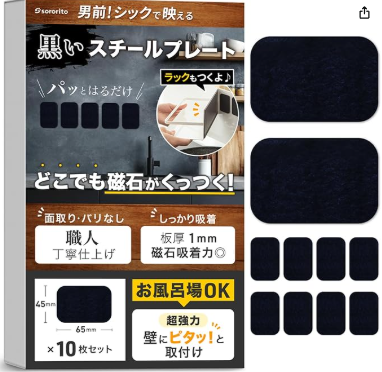 Amazon : 【日経MJ新聞掲載】 スチールプレート 黒 強力 マグネット吸着用 【超強力・お風呂場OK】 職人仕上げ 板厚1mm (65*45*1mm) 10枚セット マグネット プレート sororito