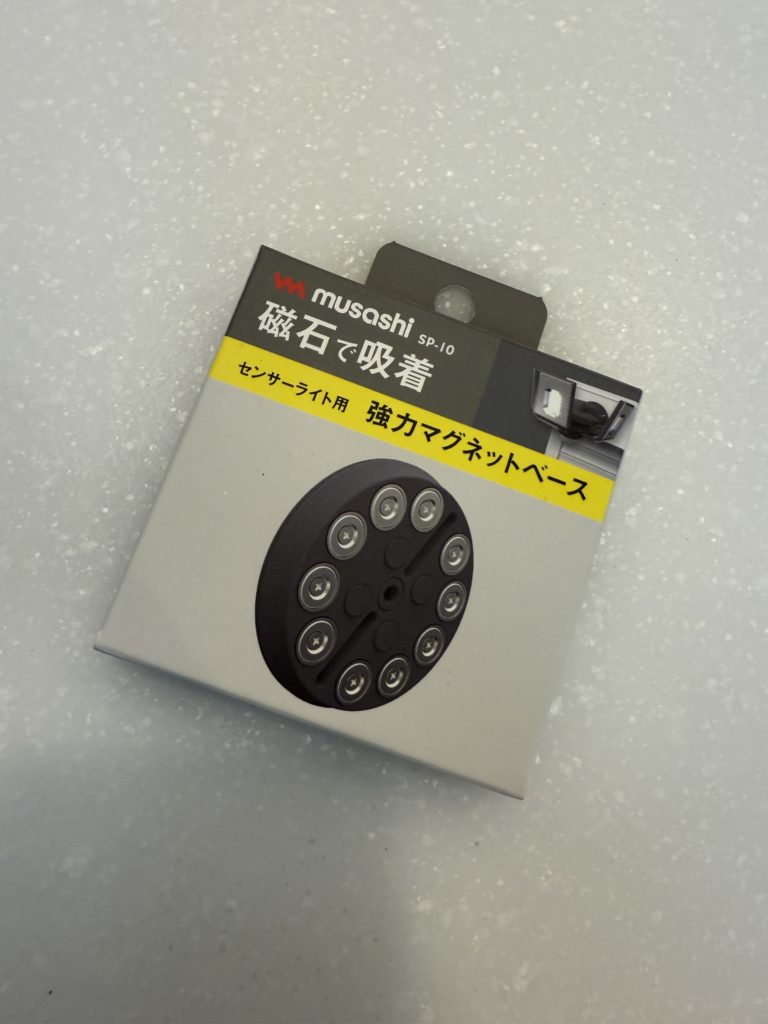次に用意するものは、防犯カメラの土台+磁石です。これもリサーチの結果、良い商品がありました。