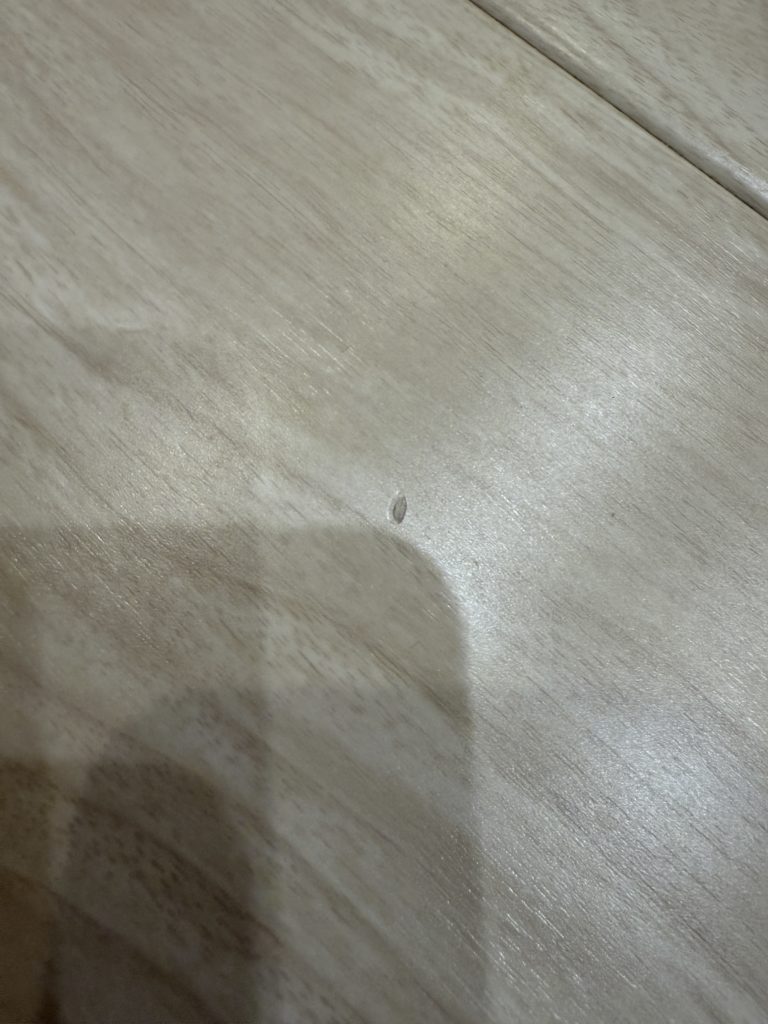 それがモクリアには多数の傷が生じるのです。。。例えばこれ、多分ソファーからモノを落としたのだと思うのですが・・・