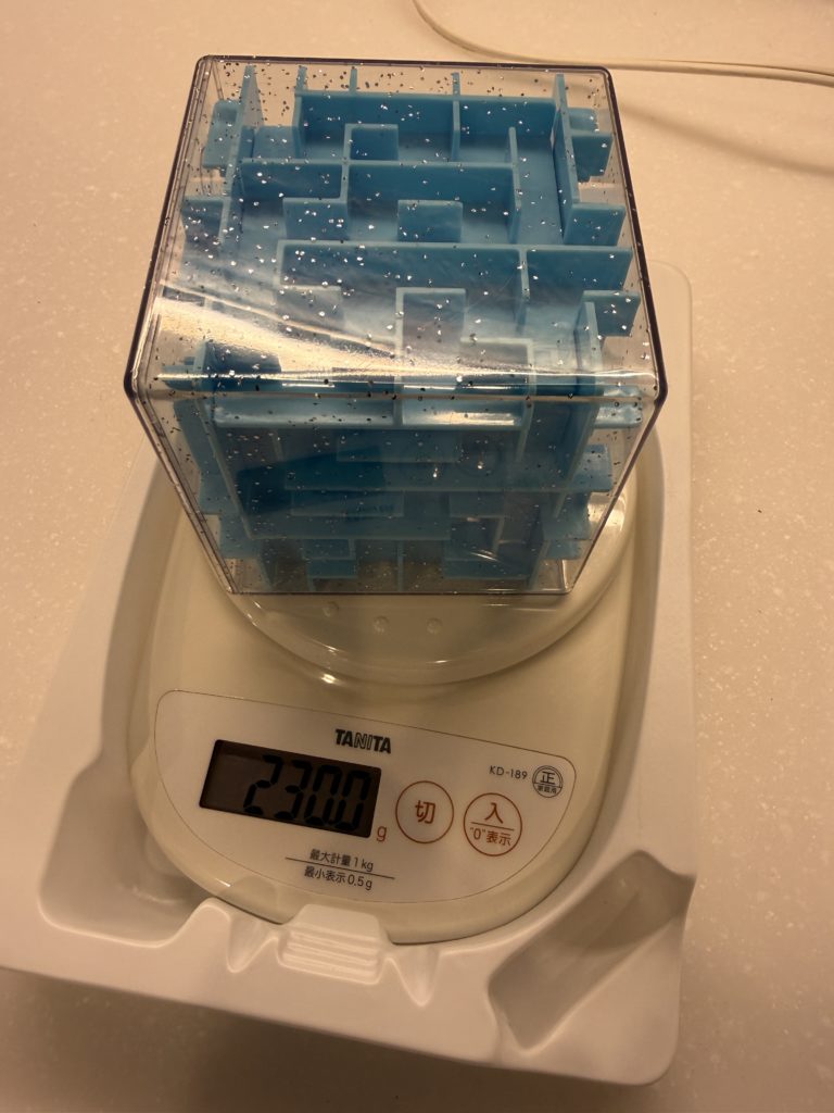 位置エネルギーmghを計算してみると、0.23kg×9.8×0.35m=0.79Jで、数字だけ見ると大した大きさではないです。おもちゃの角が当たった場合、圧力としては大きくなるので、それで凹んだということでしょうか? しかし、マンションの時はこんなものでは凹みなんて出来ませんでした。