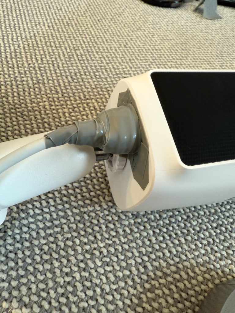 そこで防水テープを上手く駆使して、自身で防水処理を行います。あまり綺麗ではありませんが、力技で下記のような感じです(^_^;)