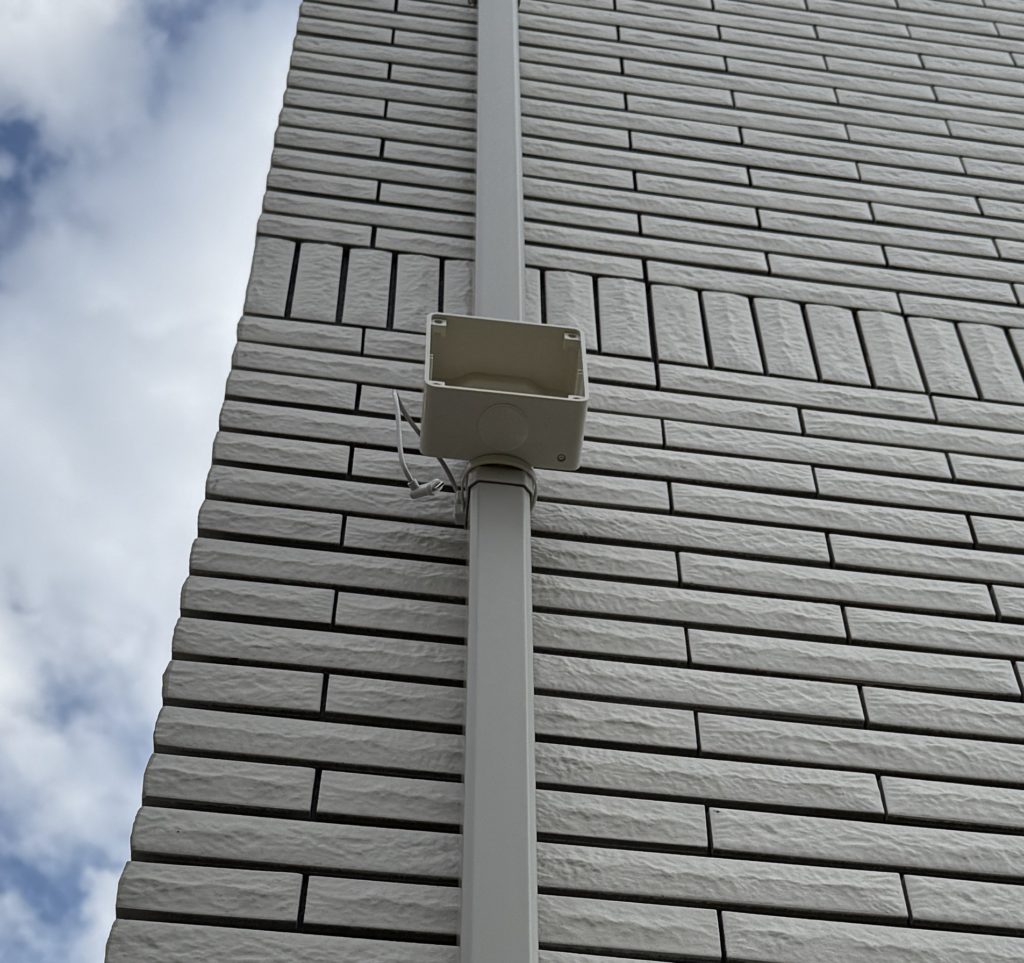 ちなみに、雨樋の防犯カメラから、地上まで約3.5mほどあり、防犯カメラ直下に電源ボックスを設置して、そこで結線することを想定すると5mほどは必要になります。かなりリサーチしましたが、あまり該当する商品がなかったのですが、我が家が使った商品はこちらです。