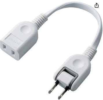1点注意点として、狭い電源ボックスの中での変換ケーブルで、屋外用の延長ケーブルは防水性の関係でコンセントの差込口が奥まっているため、普通のコンセントを結線できません。よって、下記のようなミニ変換ケーブルを用意しておくとスムーズに結線できますので、忘れずに用意しておきましょう。
