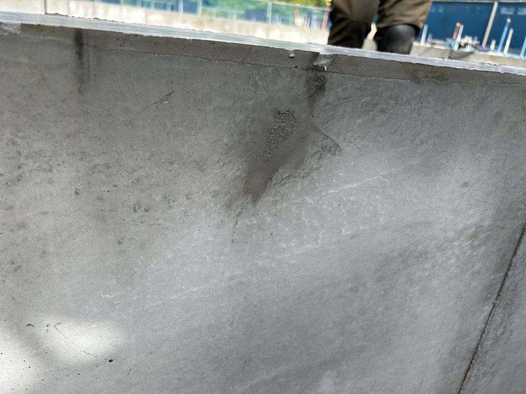まず初見でビックリしてショックだったのが、完成したコンクリートの質が非常に悪く見えることです。気泡が多数発生し、既にいくつかの補修が入っていました。