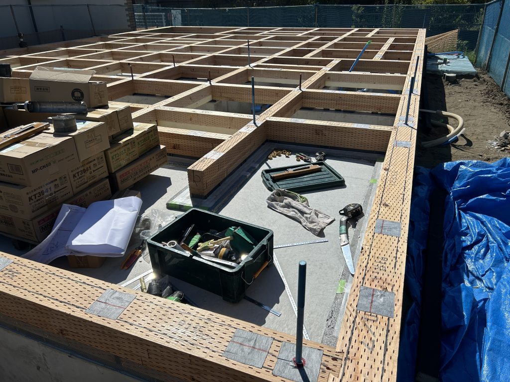 本記事を書いている時点ではまだ基礎工事中のため、断熱玄関土間の構造についてご紹介したいと思います。宿泊体験をした際に、i-smartの玄関が少し寒かったことを覚えており、今回の断熱王の採用には非常に拘りました。